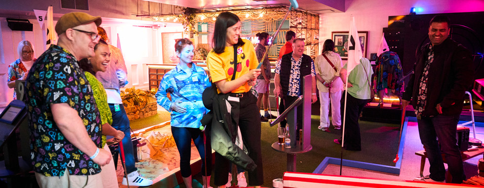 Last Friday — Loud Shirt Day — The Hearing House team, joined by our friends from Deaf Aotearoa, teamed up with Salesforce for a Loud Shirt Day celebration like no other: a mini-golf tournament at Holey Moley!